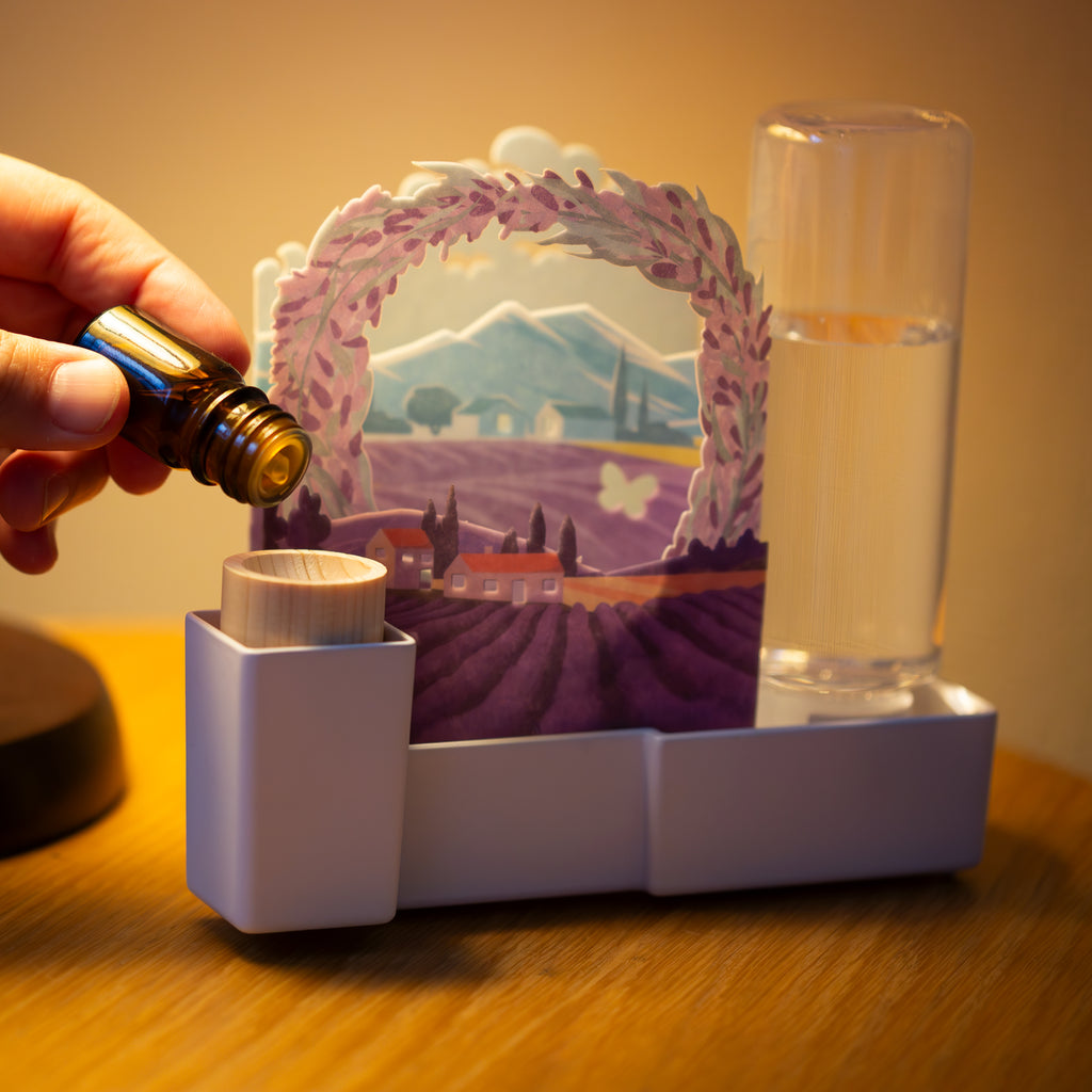 アロマディッシュのくぼみに市販のアロマオイルを2~3滴垂らすだけ。