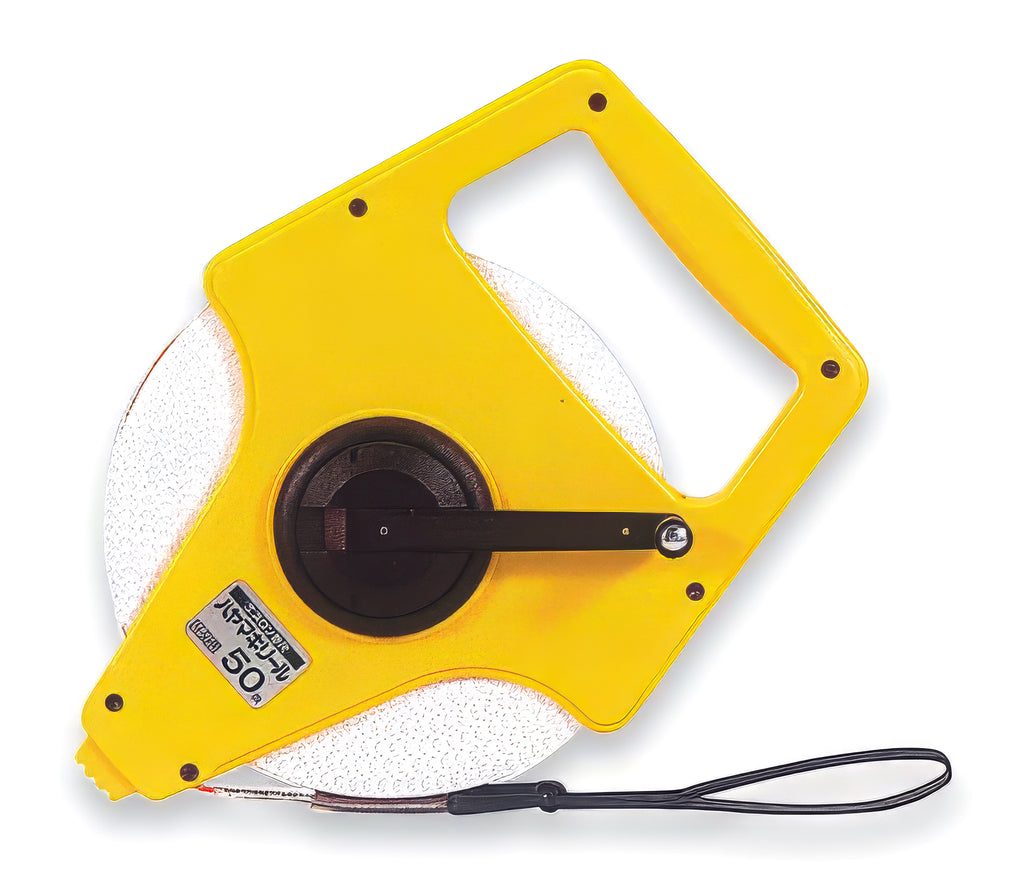 3倍速で巻き取れる遊星ギアを搭載。ケースとも軽量で使いやすいABS樹脂を採用。ハヤマキ14の目盛は表が5mmと2mmの上下2段目盛、裏面は5mm目盛で50cm毎、赤白のポール目盛仕様:・ガラス繊維テープ・長さ:50m・テープ幅:14mm・印刷:両面