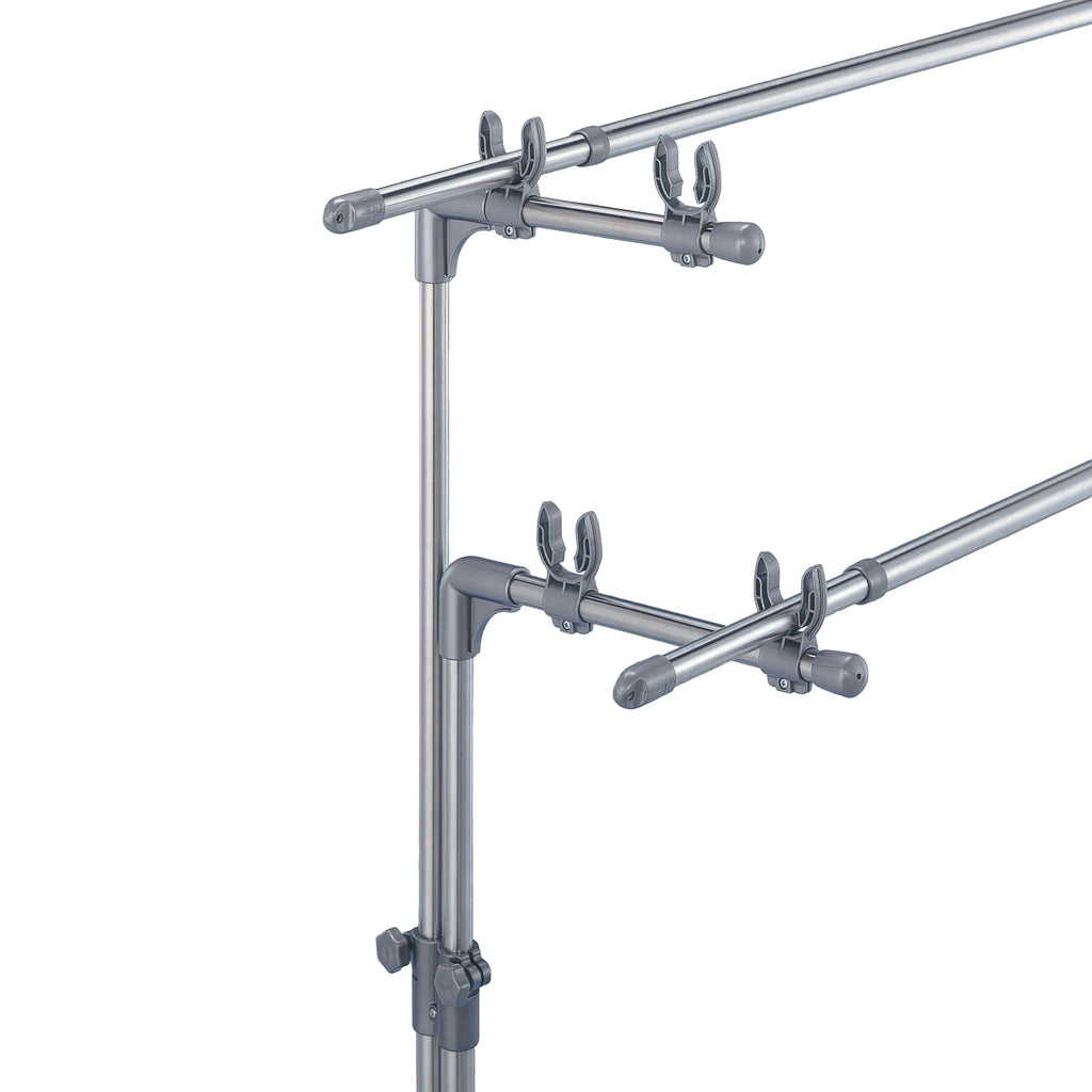 使いやすい高さに調整でき、物干し竿受けの位置も自由に設定可能。干し部の向きも片側・両側どちらでも対応できます。 -