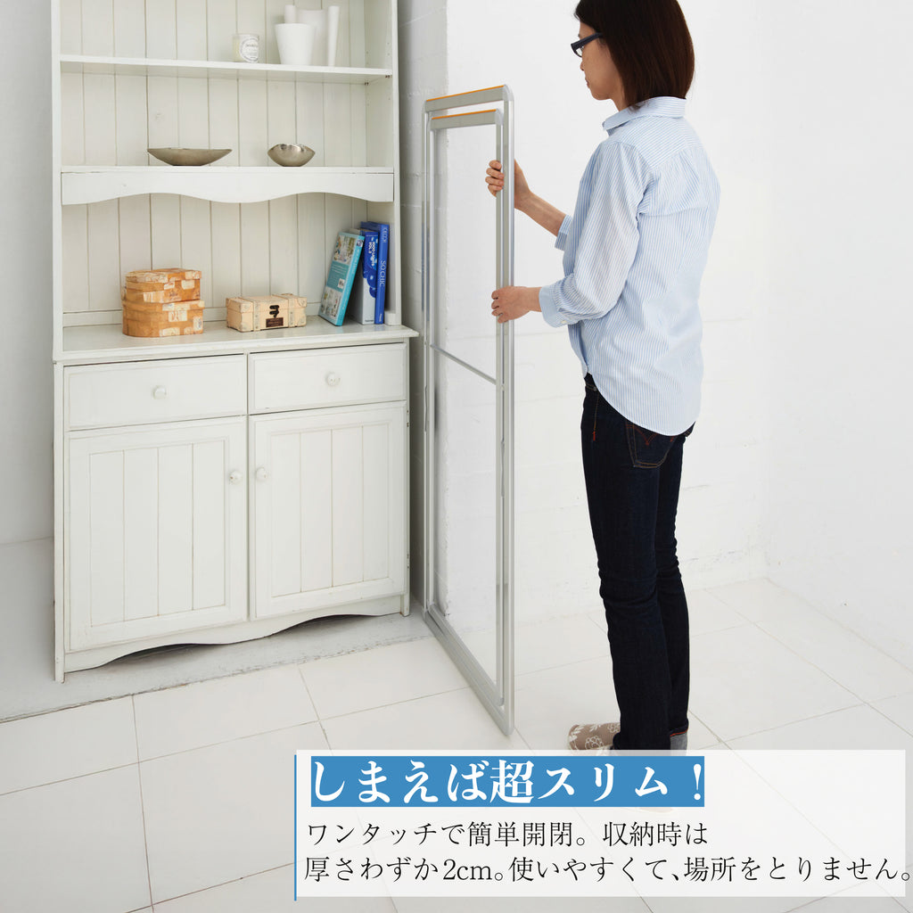 折りたたみ時には開き止め部のマグネットでピタッと固定され、約2cm幅にスリム収納可能。使いたいときにすぐ使える組立て完成品で、忙しい毎日にもぴったり。