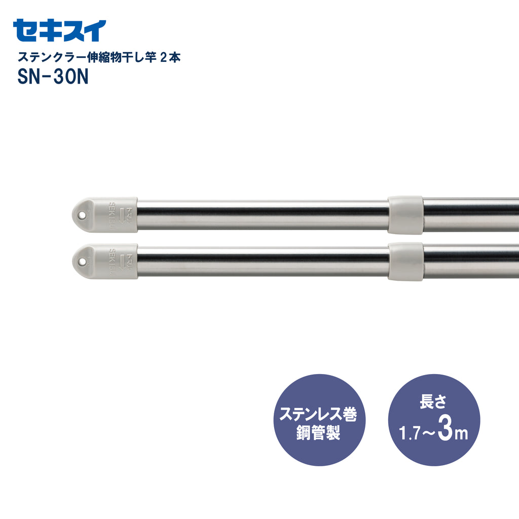 セキスイ ステンクラー伸縮物干し竿 SN-30N 2本組 幅170~300cm