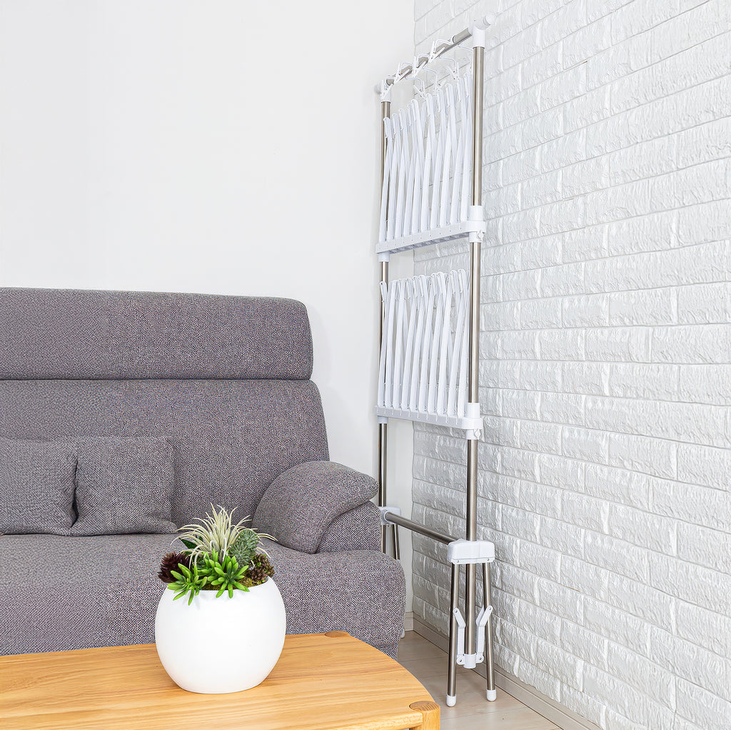 まくらやぬいぐるみなどの置き干しにも使える多用途仕様。折りたたむと約15cm幅のコンパクトサイズになり、収納もラクラク。
